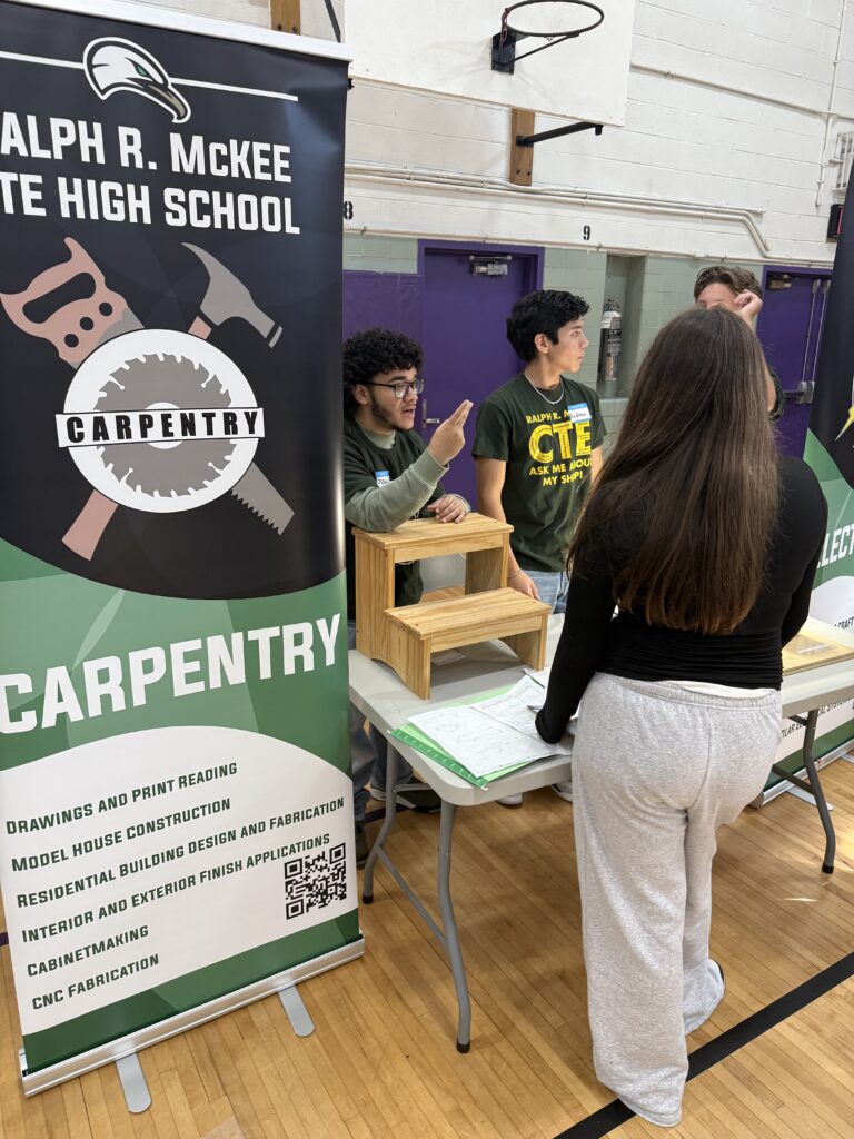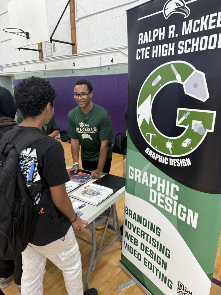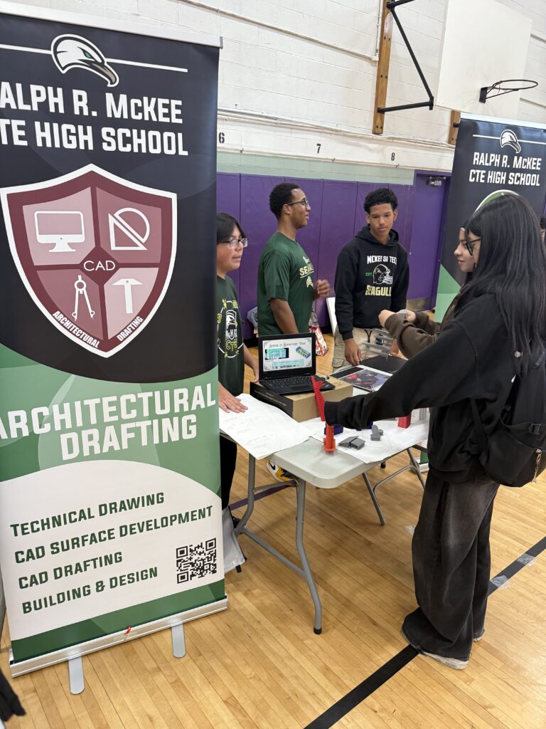 On October 16, 2025 , CTE Students met with 7th and 8th grade students from IS 2 to speak with them about the 7 CTE programs Ralph R. McKee has to offer. McKee CTE students presented different projects and equipment and answered questions about their CTE Programs.